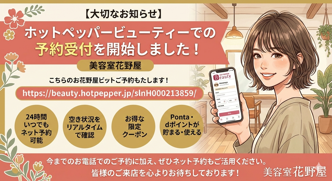 いつも美容室花野屋をご利用いただき、誠にありがとうございます。